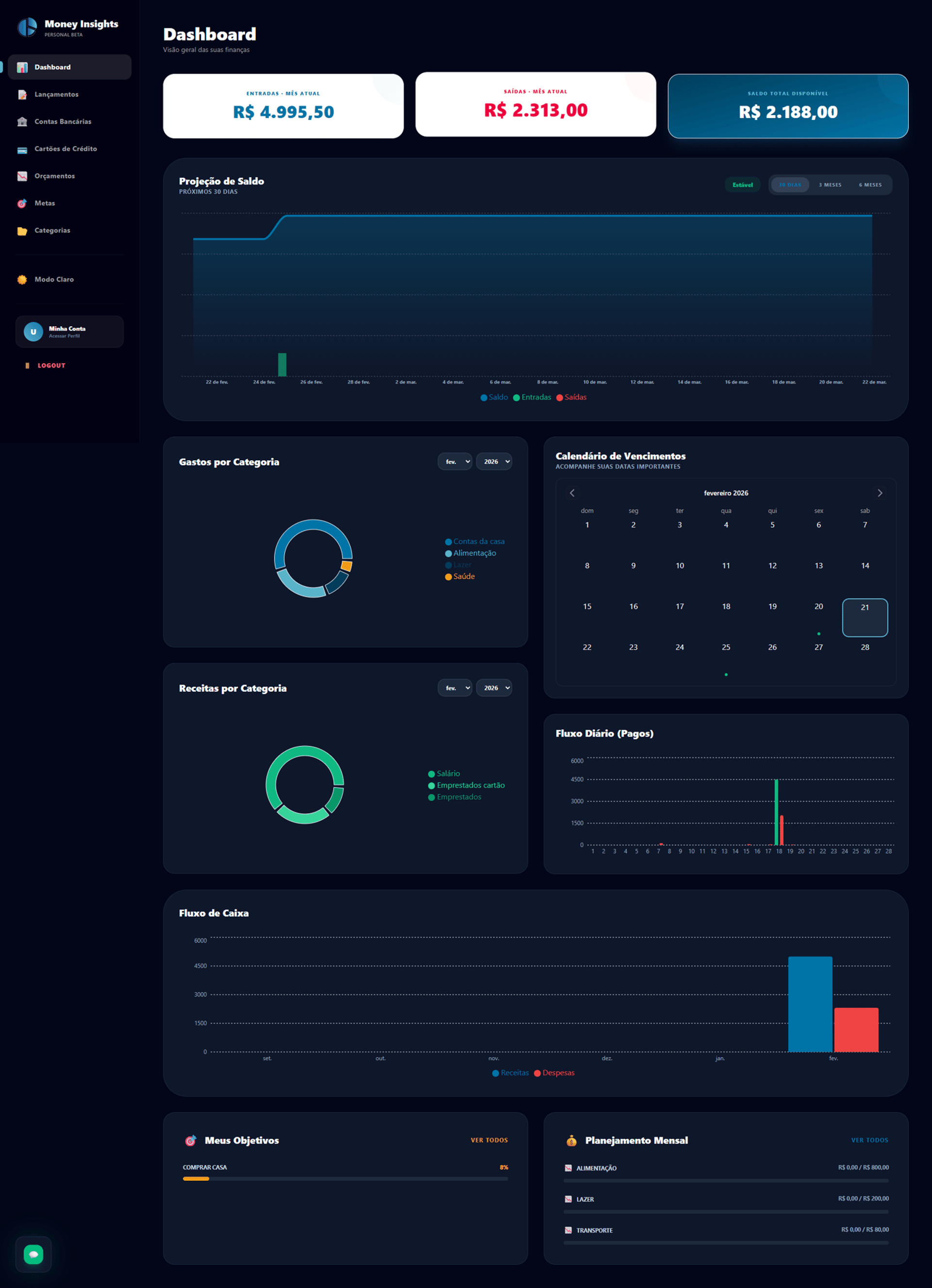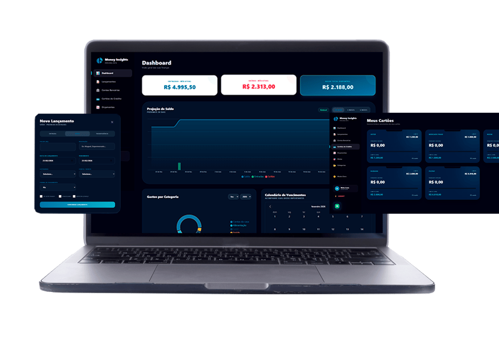Diga adeus ao medo de abrir o extrato bancário. Com nosso sistema, você organiza seus gastos, planeja seus sonhos e faz o seu dinheiro sobrar todos os meses.